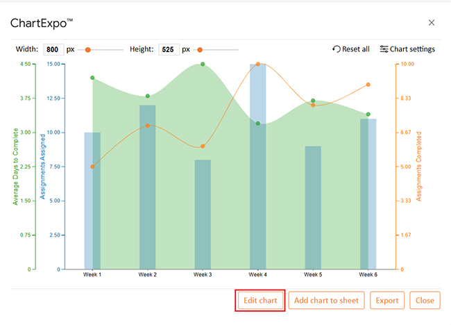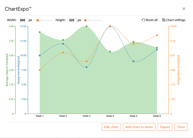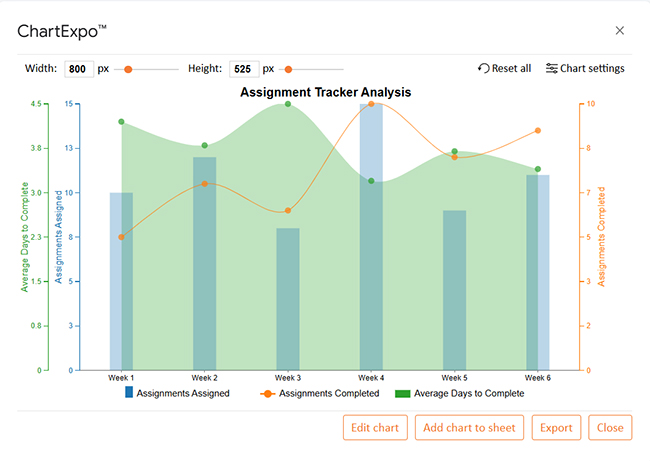 Check out the top 5 charts to analyze your Assignment Tracker Google Sheet, all made with ChartExpo: