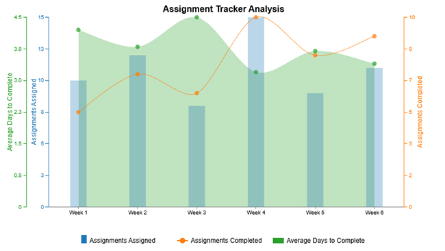 Week | Assignments Assigned | Assignments Completed | Average Days to Complete |