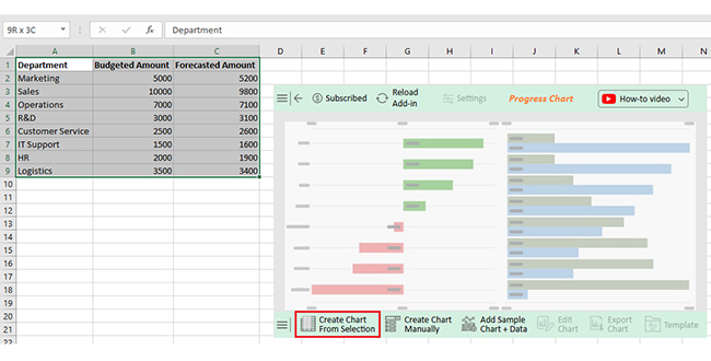 • Click the “Create Chart From Selection” button after selecting the data from the sheet, as shown.