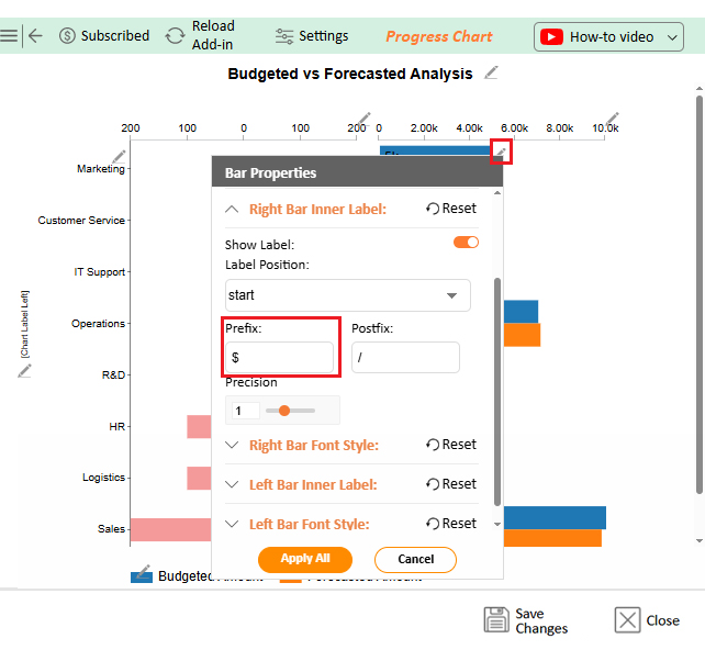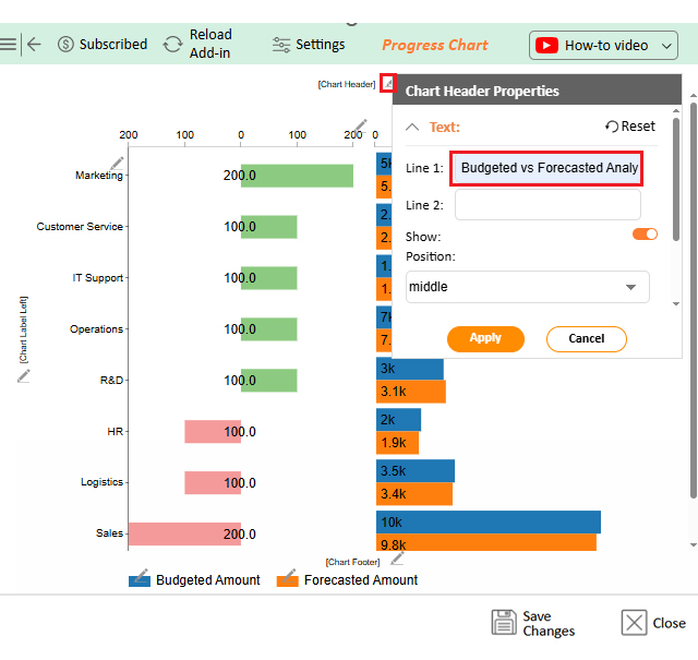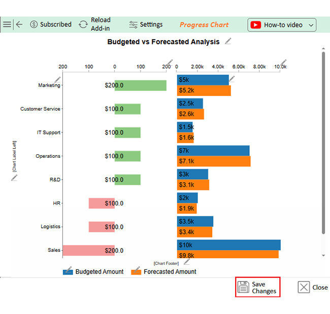 • Click the “Save Changes” button to persist the changes made to the chart.