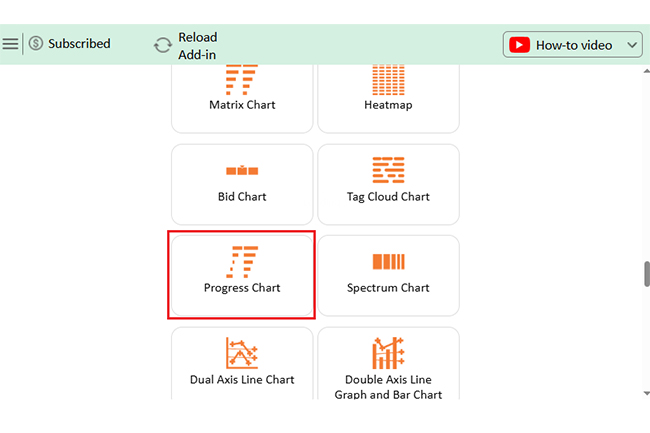 • Once it loads, scroll through the charts list to locate and choose the “Progress Chart”.