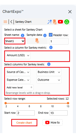 Let’s analyze this sample data in Google Sheets using ChartExpo and visualize the flow with a Sankey chart.