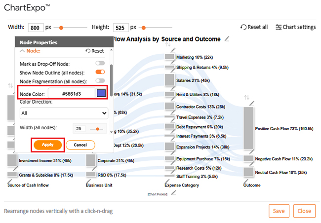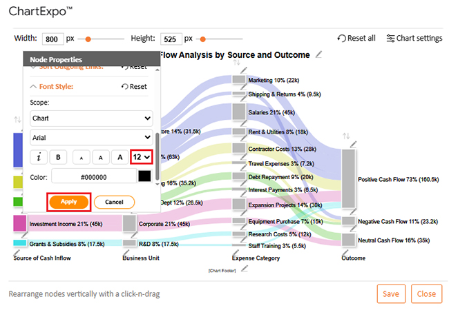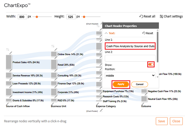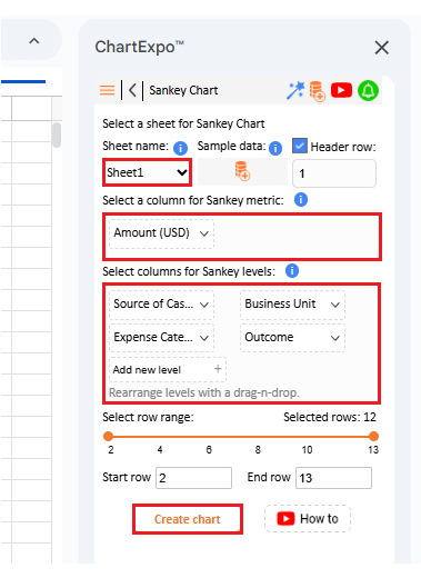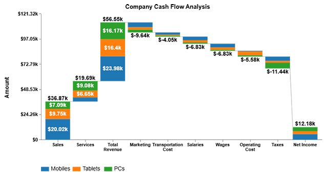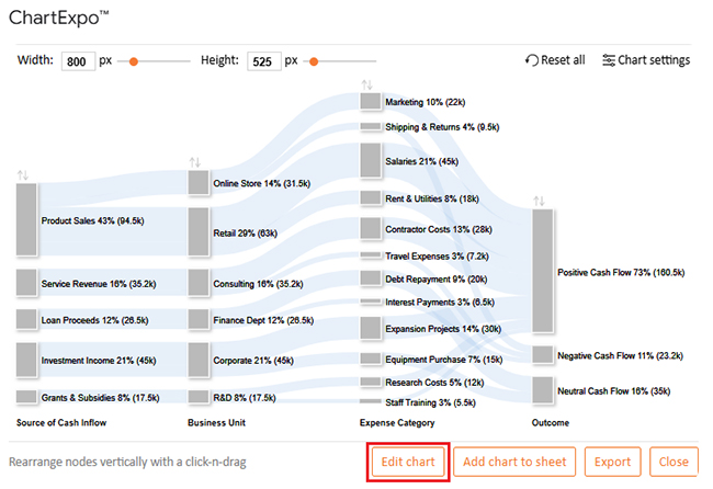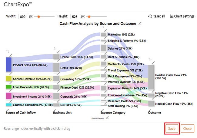 Let’s analyze the cash flow sample data below in Google Sheets using ChartExpo.