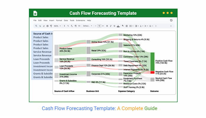 Definition: A cash flow forecasting template in Google Sheets helps track money coming in and out. It organizes income, expenses, and savings in one convenient location. Businesses use it to predict future cash positions. This supports better planning and decision-making. It is helpful for financial forecasting for startups as it shows whether funds will cover costs.