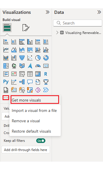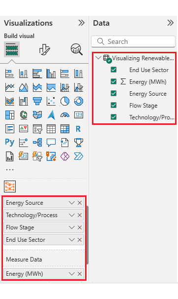 • To build a Sankey Chart, you will initially have to import an add-in or Power BI visual through App Source. You will find the Visualizations panel on the right side of your Power BI dashboard.