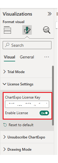 • In Visualization’s properties, click on License Settings and add the key so that you’ll see the Sankey Chart without a watermark.