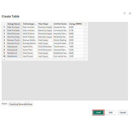• Paste the data table above into a blank table, name it, and click on the “Load” button.