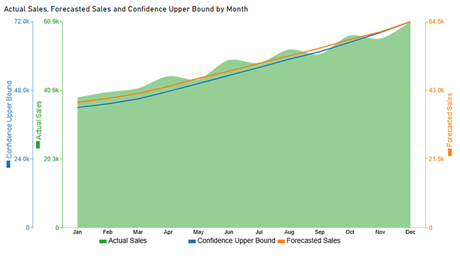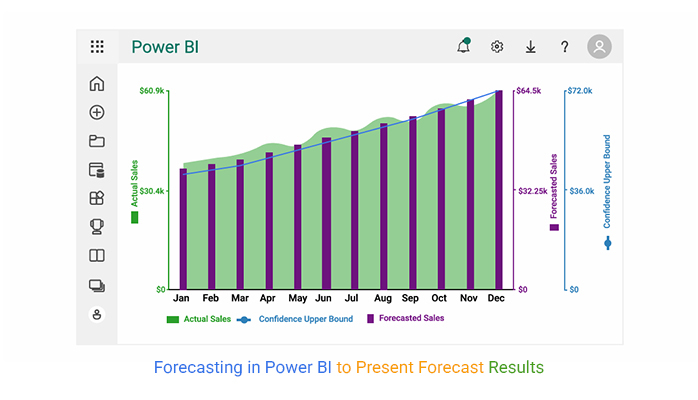 Forecasts sit right on the chart, and Power BI data visualization keeps the story interactive instead of static.