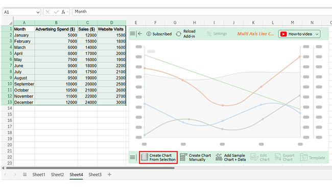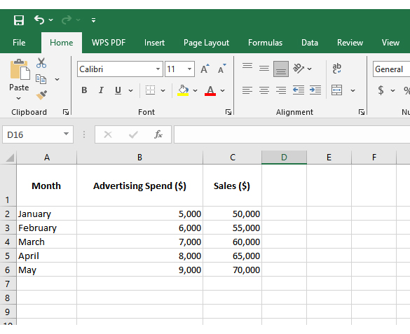 | Month | Advertising Spend ($) | Sales ($) | Website Visits |