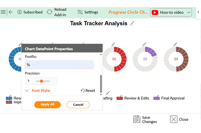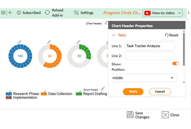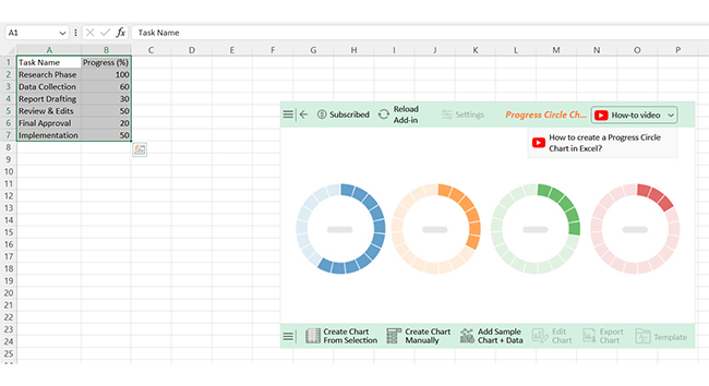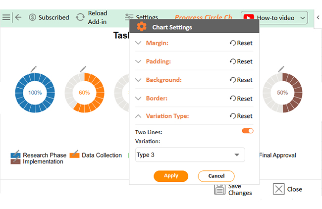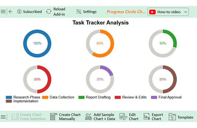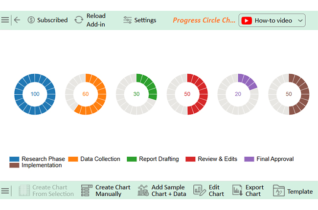 • Once it loads, scroll through the charts list to locate and choose the “Progress Circle Chart”.
