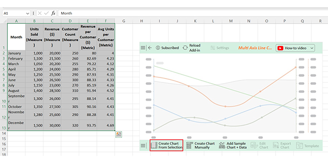 • Click the “Create Chart From Selection” button after selecting the data from the sheet, as shown.