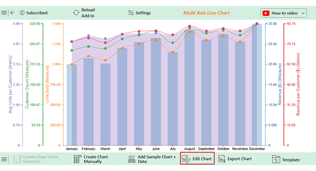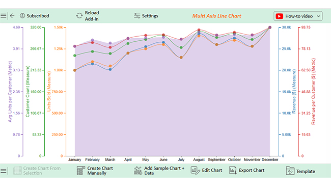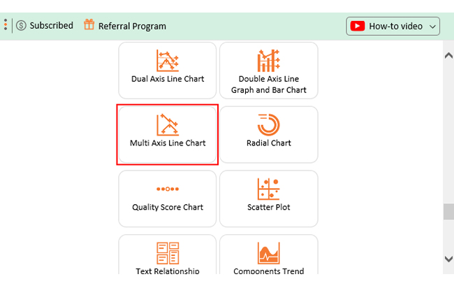 • Once it loads, scroll through the charts list to locate and choose the “Multi Axis Line Chart”.