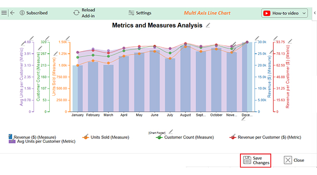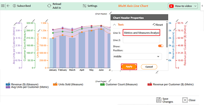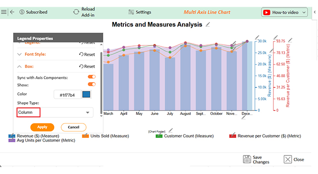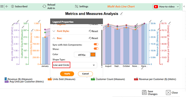 • Change the legend shapes into “Line and Circle” of Units Sold & Customer Count and click the “Apply” button: