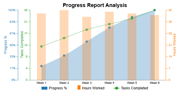 Week Tasks Completed Hours Worked Progress %