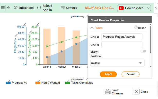 • Click the pencil icon next to the Chart Header to change the title.