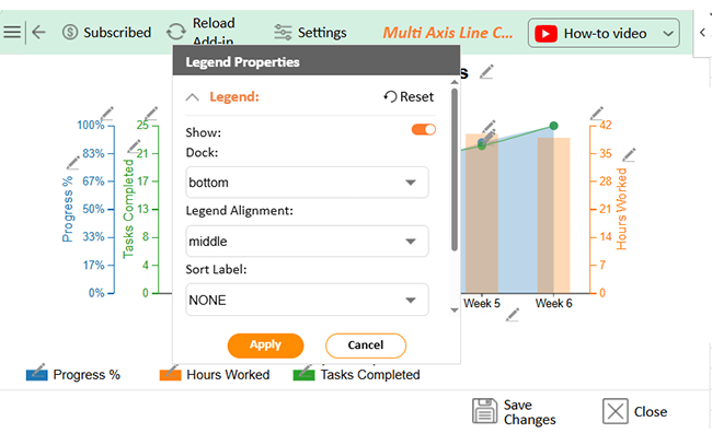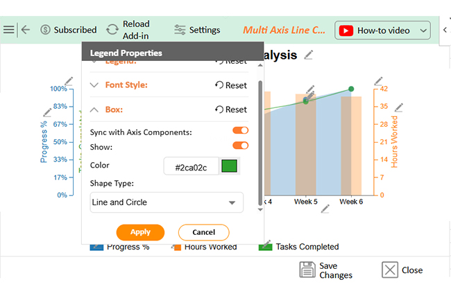 • Change the legend shape of Task Completed into Line and Circle, and click the “Apply” button:
