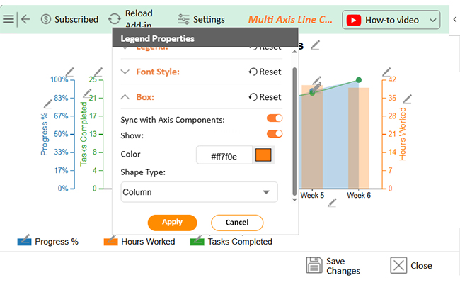 • Change the Legend shape of worked hours into a Column and click the “Apply” button: