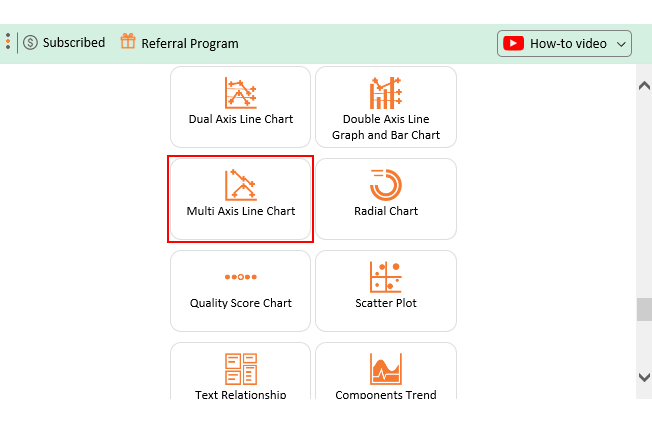 • Once it loads, scroll through the charts list to locate and choose the “Multi Axis Line Chart”.