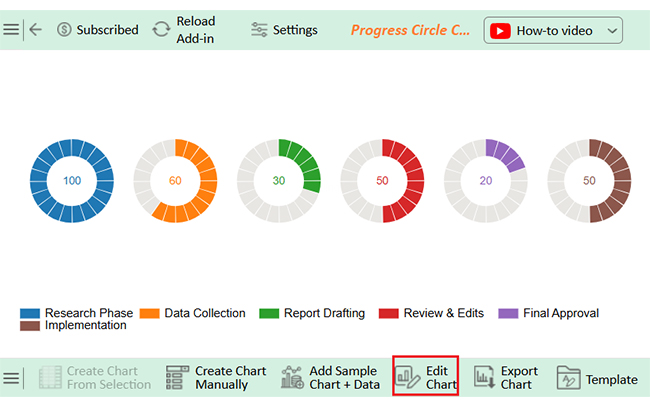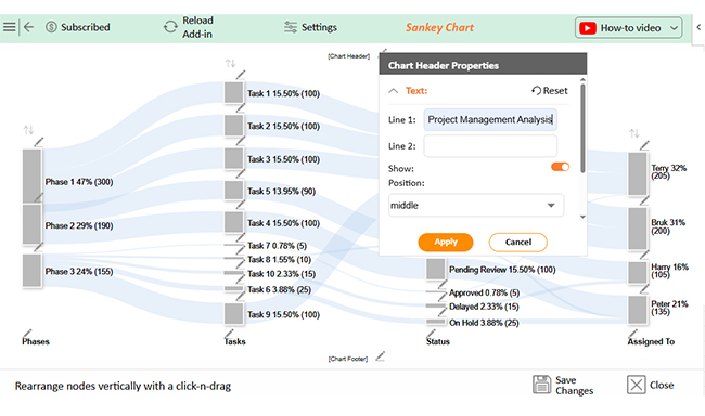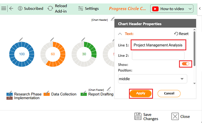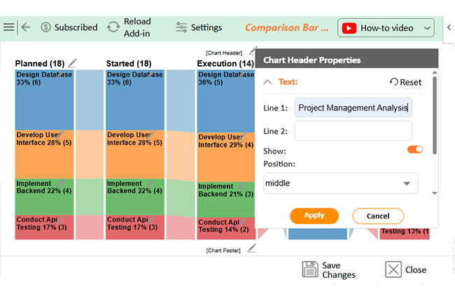 • Add a header text on top of the chart by clicking the Edit button as follows: