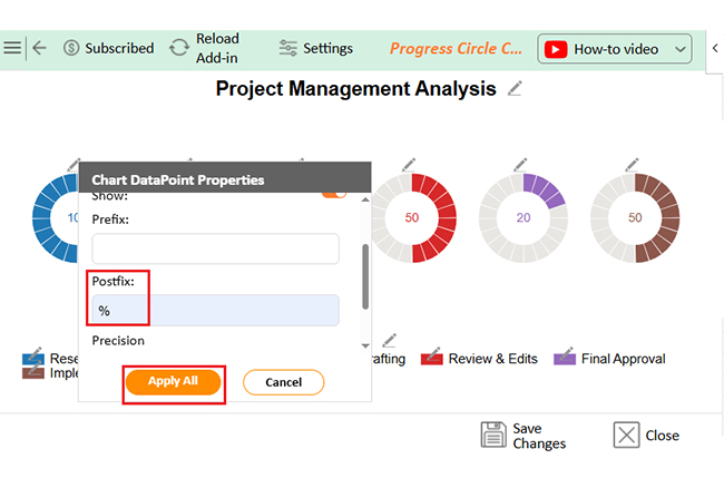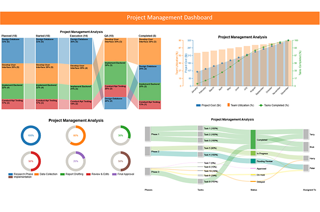 Now, it’s time to place the charts in a good way. After placing the charts, the project Management dashboard should look like below: