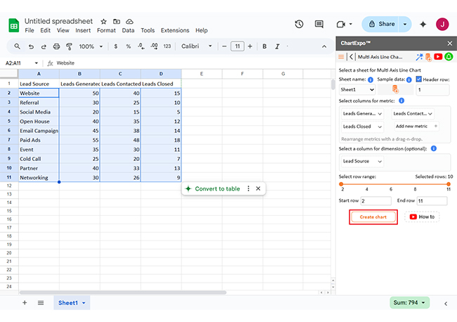Let’s visualize and analyze this sample data in Google Sheets using ChartExpo.