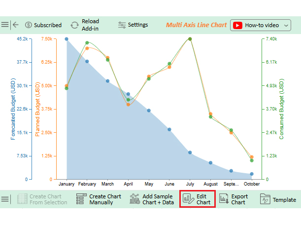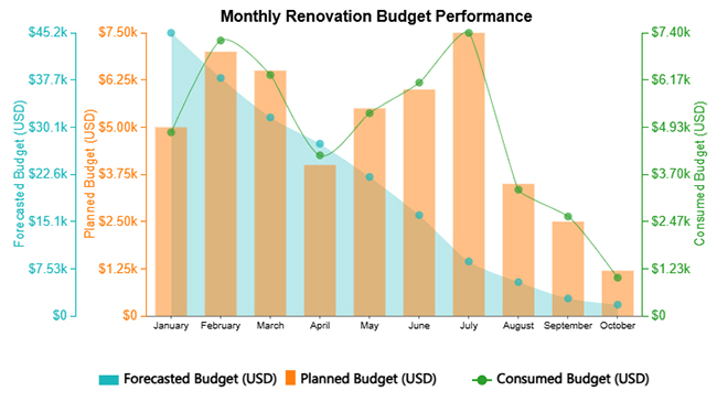 Use this chart to compare trends that have different scales. For example, you can monitor labor hours against material costs in one view. It makes project adjustments easier.