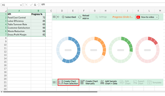 Let’s analyze the restaurant KPIs sample data in Excel using ChartExpo.