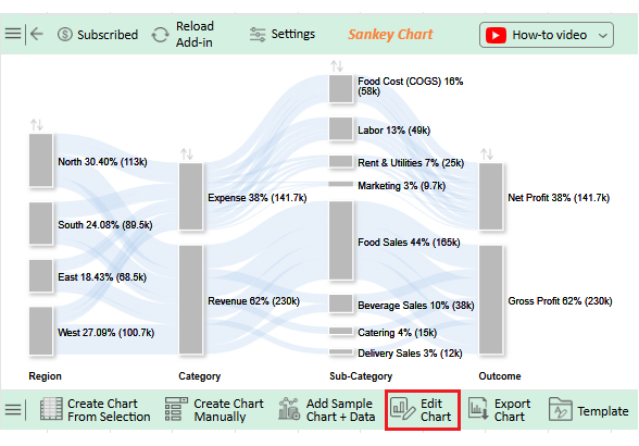 | North | Expense | Food Cost (COGS) | Net Profit | 18,000 |