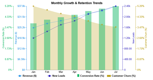 • Your tabular data will turn into a Comparison Bar chart, as shown below.