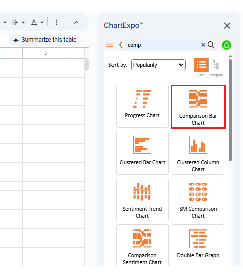 • Once ChartExpo is loaded. Click on “Comparison Bar Chart”.