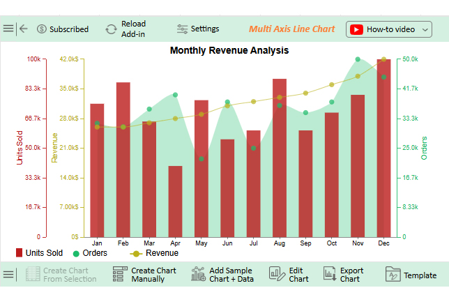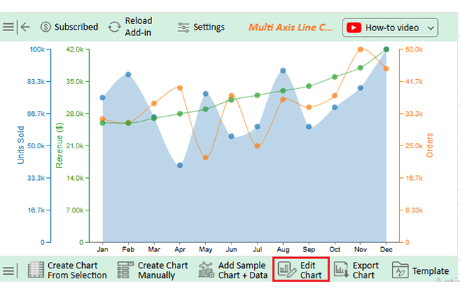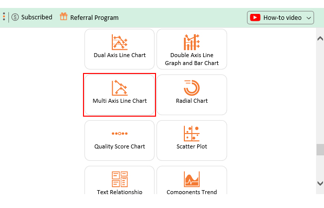 • Once it loads, scroll through the charts list to locate and choose the “Multi Axis Line Chart”.