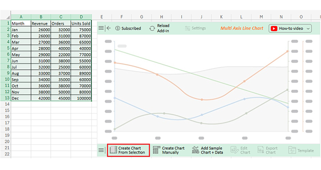 • Click the “Create Chart From Selection” button after selecting the data from the sheet, as shown.