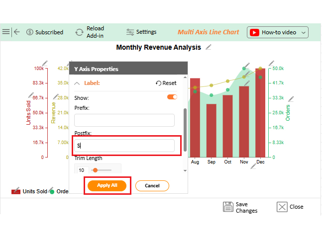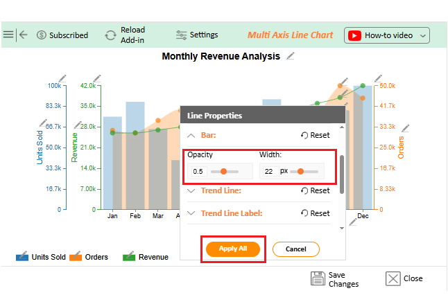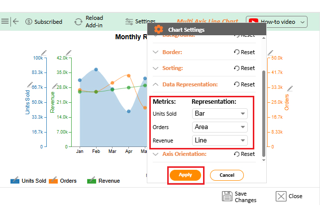 • Click the “Save Changes” button to persist the changes made to the chart.