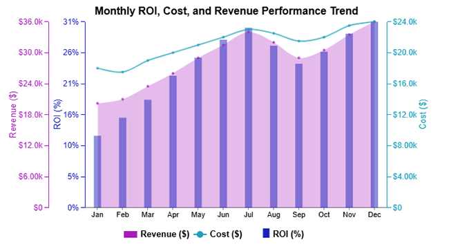 This result shows a positive ROI, indicating the campaign delivered measurable value. Visualizing such outcomes using financial charts can enhance interpretation and communication even further.